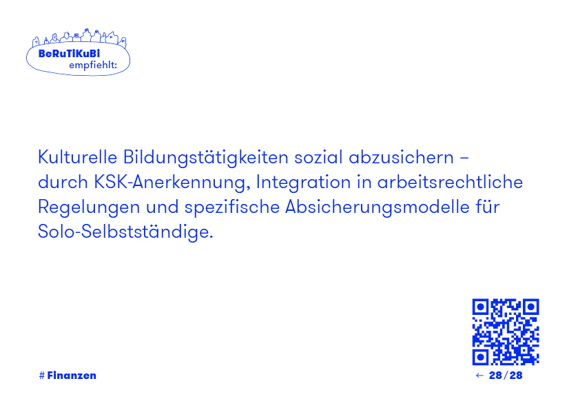 Kulturelle Bildungstätigkeiten sozial abzusichern – durch KSK-Anerkennung, Integration in arbeitsrechtliche Regelungen und spezifische Absicherungsmodelle für Solo-Selbstständige.